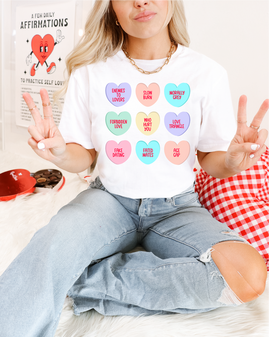 Conversation Heart Tropes T-shirt | Bookish Shirt