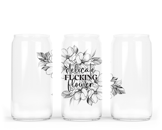Delicate Fucking Flower Glass Can with Bamboo Lid
