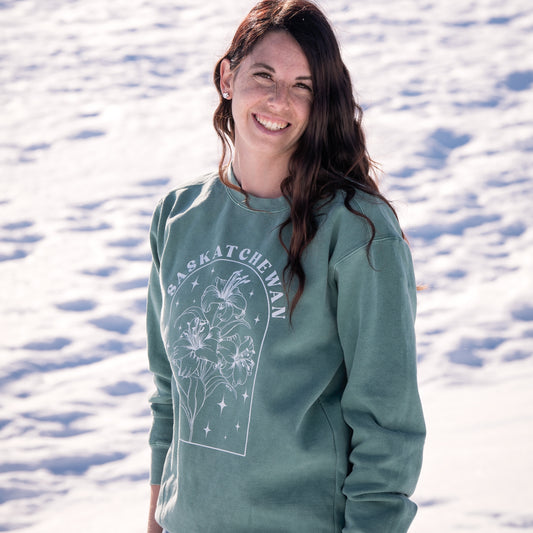 Line Art Prairie Lily Unisex Garment-Dyed Crewneck | Saskatchewan Clothing