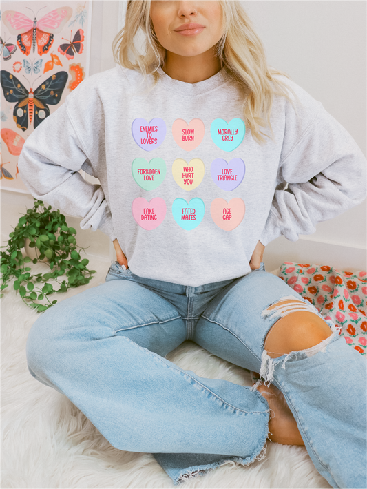 Conversation Heart Tropes Unisex Crewneck Sweatshirt | Bookish