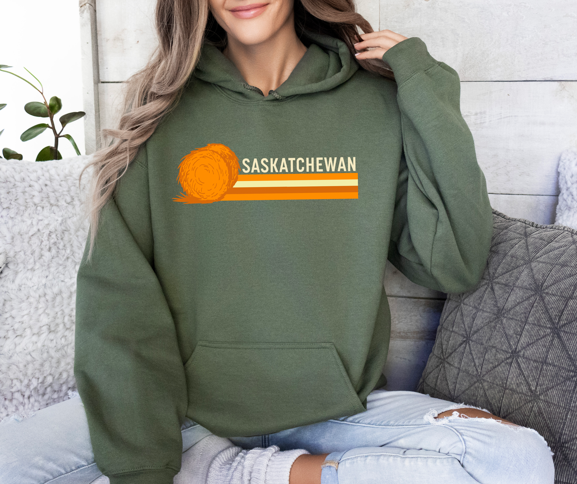This Saskatchewan hoodie is a cozy, everyday staple for anyone who loves Saskatchewan clothing and showing off their prairie pride. Featuring a retro-inspired hay bale graphic and clean “Saskatchewan” lettering, this design blends vintage vibes with modern comfort. Soft, warm, and easy to wear, it’s perfect for cool mornings, lake nights, road trips, or everyday life in Sask. Whether you’re local, gifting, or repping your roots from afar, this hoodie is a comfortable way to celebrate Saskatchewan in style.