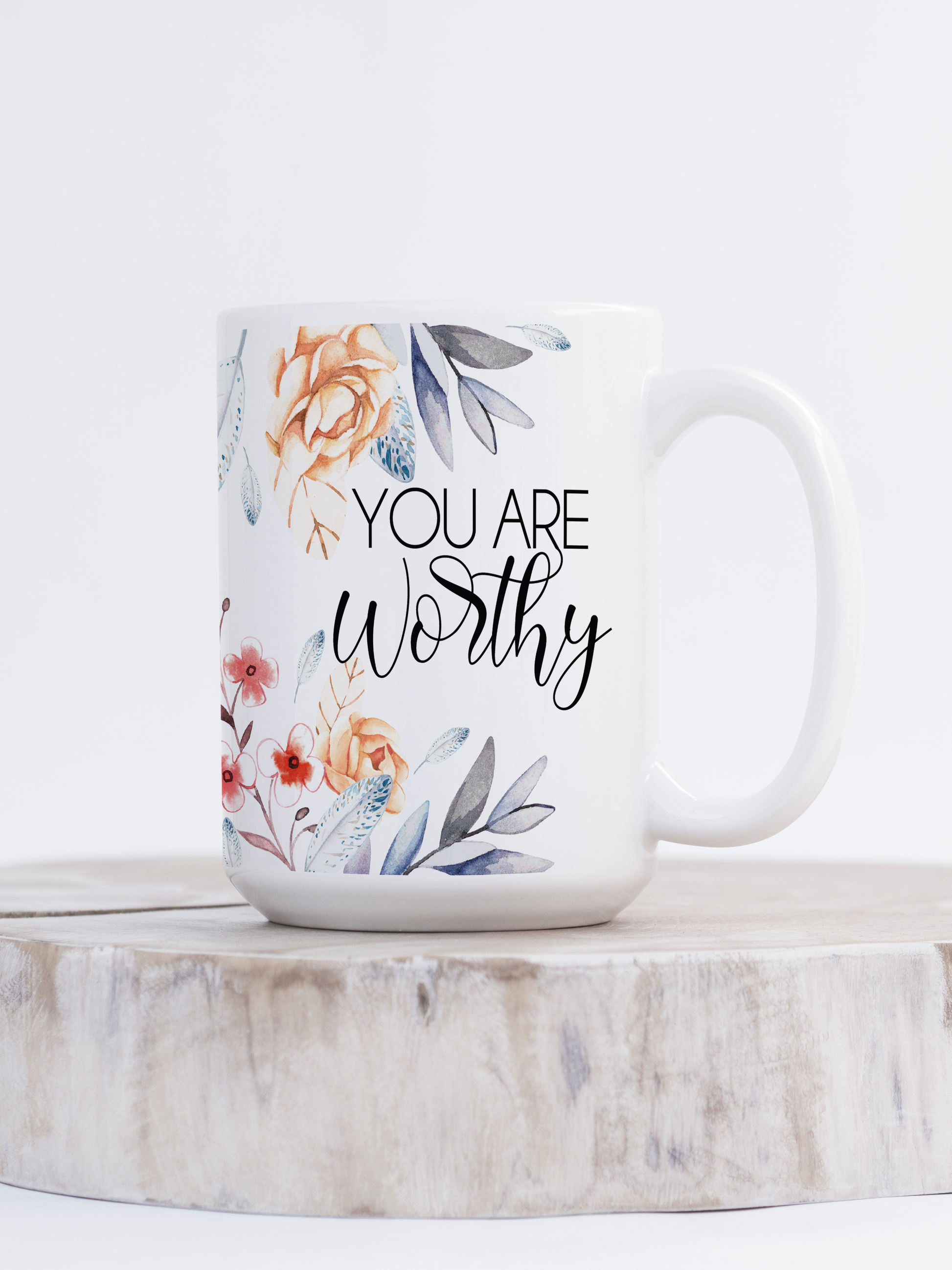 This mental health affirmation mug features the gentle reminder “You Are Worthy,” framed by soft floral artwork designed to bring calm and reassurance to your daily routine. Perfect for morning coffee or quiet moments throughout the day, this mug encourages self-worth, self-love, and emotional wellbeing with every sip.